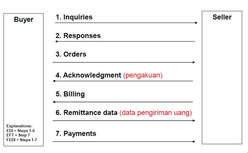 - Penggunaan EDI untuk bertukar informasi hanyalah bagian dari hubungan pembeli-penjual dalam business-top business e-commerce