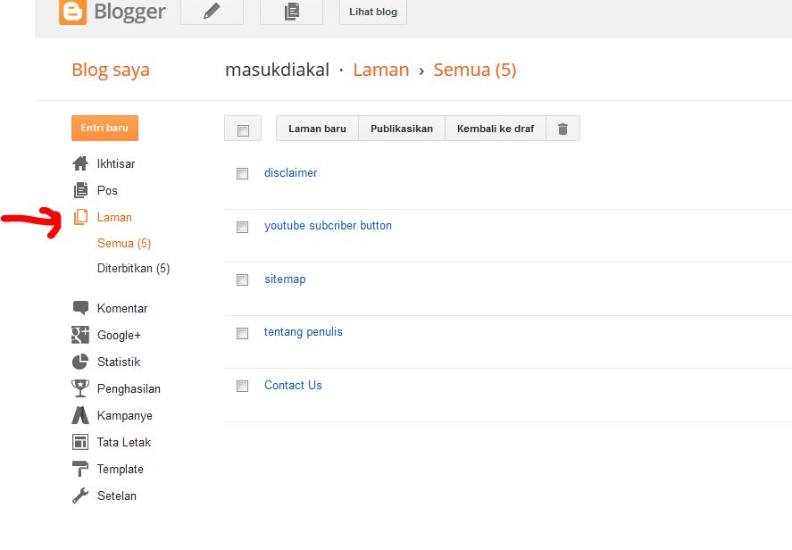 Laman : seperti namanya laman adalah halaman, yang dapat anda manfaatkan untuk membuat lembar penting seperti daftar isi, home, dan lain lain, usahakan jangan membuat postingan artikel disini, karena lama disini dimasudkan sebagai lembar khusus. jika diistilahkan pada buku, pos adalah kertas tempat anda menulis, dan laman diibaratkan sebagai sampul nya.