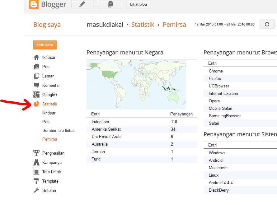 statistik : informasi yang berhubungan dengan statistik aktivitas blog anda, mulai dari pengunjung perhari, sumber lalu lintas pemirsa, postingan dll