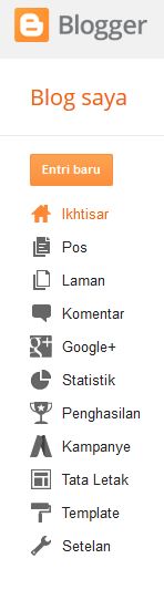Berikut adalah Menu Blogger yang biasanya ada dalam pengaturan Blogger: