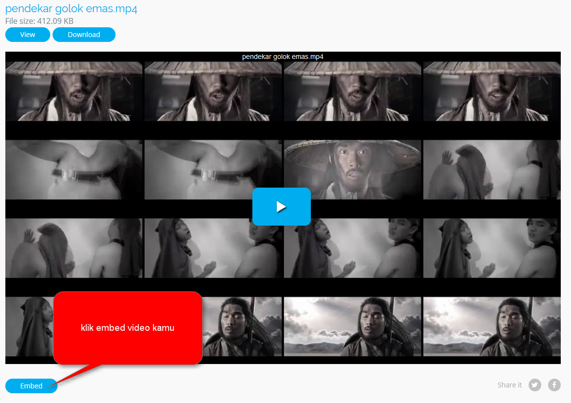 2. selesai upload fil kamu bakalan di tampilin silakan kalian cari tombol yang ada tulisan embed