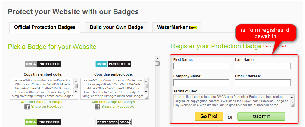 lalu bagaimana cara mendaftarkan blog atau situs ke dmca