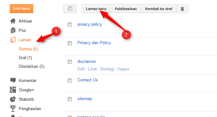 kemudian buatlah sebuah halaman baru pada blog anda,