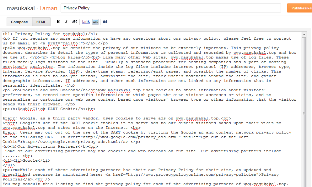 untuk memudahkan anda menulis privacy policy kali ini saya akan mengajarkan cara membuat privacy policy yang pasty 100 % approve untuk google adsense.