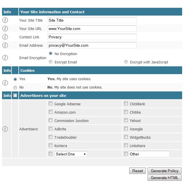 1. silahkan anda buka http://www.privacypolicyonline.com/
