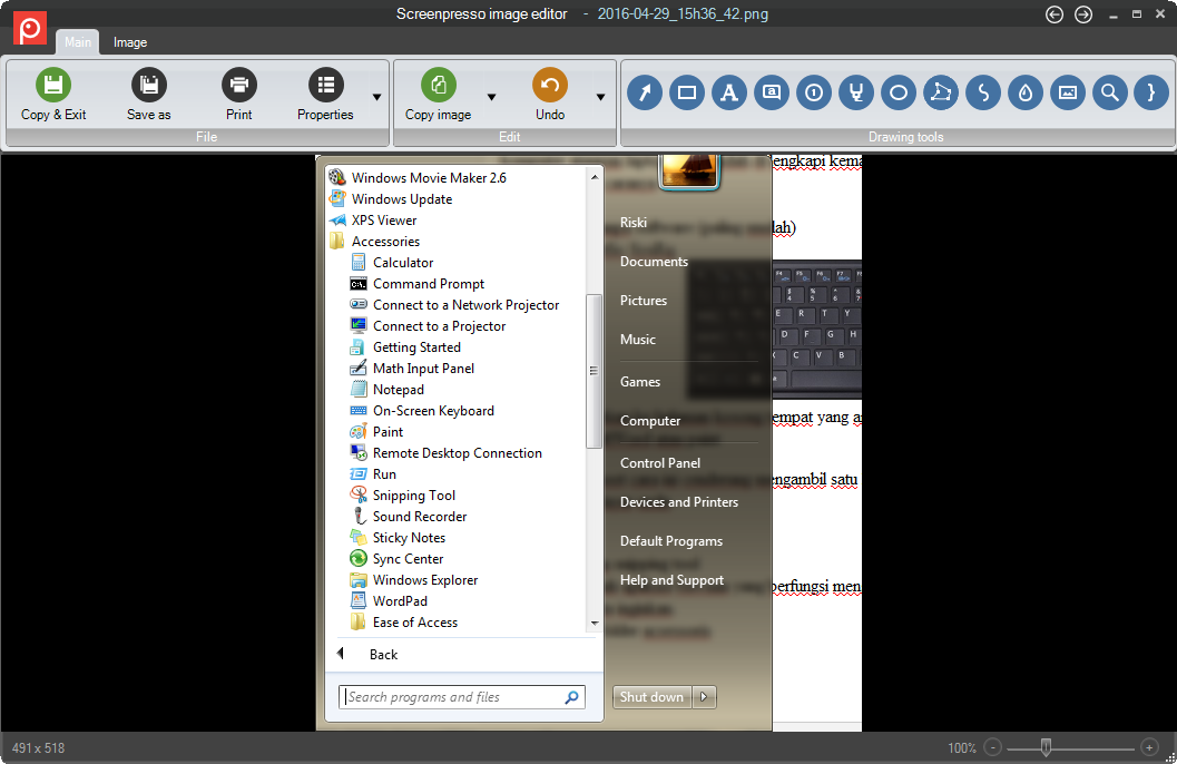 anda juga bisa menambahkan keterangan pada gambar anda seperti melingkari gambar tertentu, menunjuk dengan panah, menambahkan keterangan serta lain lain.