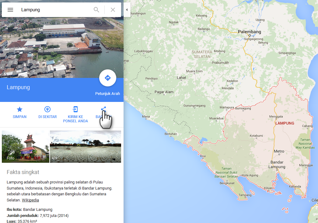 3. setelah anda map menampilkan peta daerah sesuai yang anda inginkan tekan bagikan