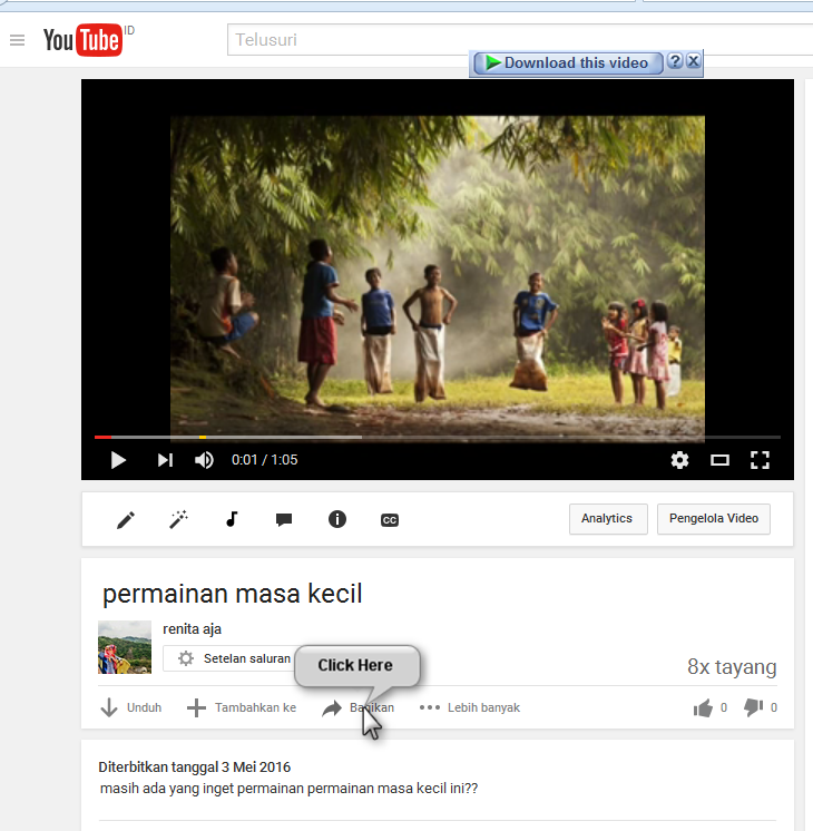 1. silahkan buka sebuah video pada youtube sesuai dengan keinginan anda