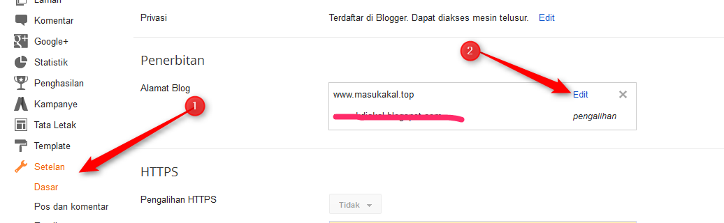 1. silahkan buka setelan pada blog anda – masuk pada tap dasar