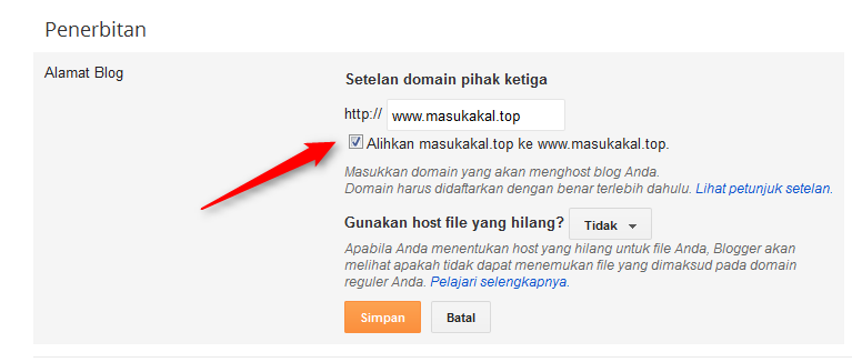 3. centang alihkan url blog anda
