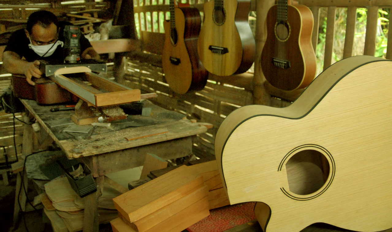 usaha pembuatan gitar dan bagaimana proses produksinya dilakukan, serta