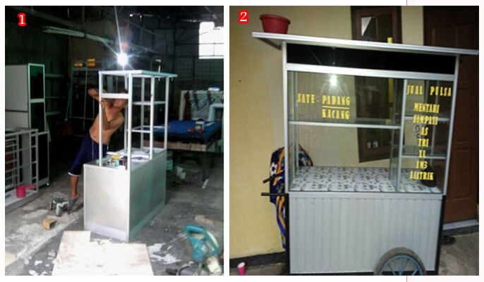 Yang jelas Gerobak dan estalase merupakan media yang wajib dimiliki untuk berjualan, terutama untuk para penjualan makanan baik yang keliling maupun yang menetap di ruko, pasti menggunakan gerobak. Terlebih lagi untuk yang jualan keliling dan penjaja makanan pinggir jalan sudah pasti tidak bisa dilakukan jika tanpa gerobak.